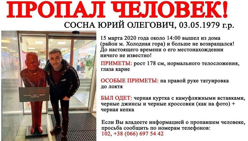 В Харькове ушел из дома и не вернулся Юрий Олегович Сосна.